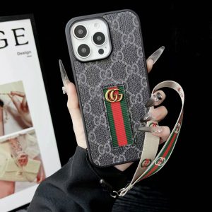 Designer-Inspired Monogram Stripe iPhone Case with Wrist Strap